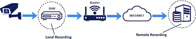 Your camera(s) capture footage in the form of a video file. That footage is sent to a Digital Video Recorder (DVR) which is kept on-site at your premises. The DVR stores your footage locally and then uploads to the Cloud using intelligent bandwidth management to ensure your internet links are never overwhelmed. The footage is stored on a ISO27001/GDPR compliant cloud environment.
